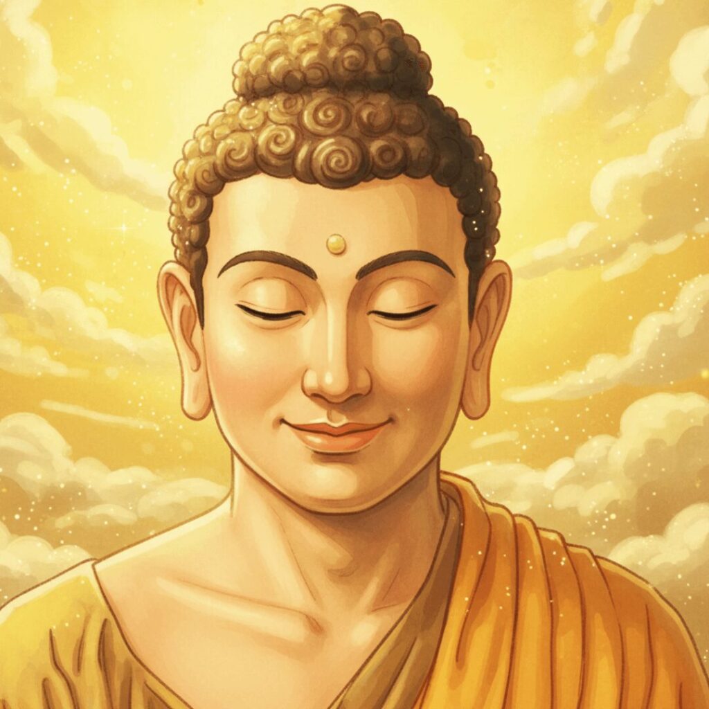 Soon Buddha stood at the edge of the Pond and, looking down through the lotus leaves covering the water’s surface, Buddha suddenly saw what was below.